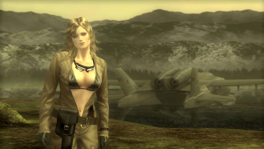 L’idée de pureté et de commencement est encore soulignée par des références à la Genèse. Pour mener à bien sa mission, Snake est censé être aidé par deux agents soviétiques, Adam et Eva. Le Serpent et le couple originel (nous verrons plus loin de quelle manière est représenté le Fruit défendu de la Connaissance.) Si Adam semble à première vue ne jamais apparaitre dans le scénario (bien que l’on apprenne finalement qu’il s’agit d’Ocelot, déjà agent triple alors qu’il est à peine sorti de l’adolescence), Eva est bel et bien présente. Blonde pulpeuse, sexy à damner un saint, l’agent double ne cesse de faire des avances sexuelles à Snake qui résiste stoïquement, même s’il n’hésite pas à reluquer discrètement de temps en temps les courbes généreuses de la belle. Renversement ironique de la situation biblique où le rôle du tentateur était bien évidemment alloué au serpent…